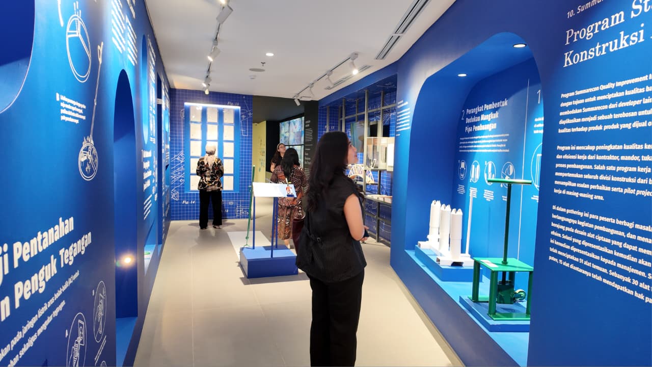 Adrianto menjelaskan, ruang ekshibisi ini menampilkan berbagai arsip visual, instalasi digital, maket, mural, hingga video perjalanan yang menggambarkan dinamika pembangunan kawasan Summarecon selama lima dekade. Kurasi visual tersebut dihadirkan untuk memberi gambaran menyeluruh, mulai dari sejarah awal perusahaan hingga perkembangan konsep kota terpadu yang mereka kembangkan saat ini.