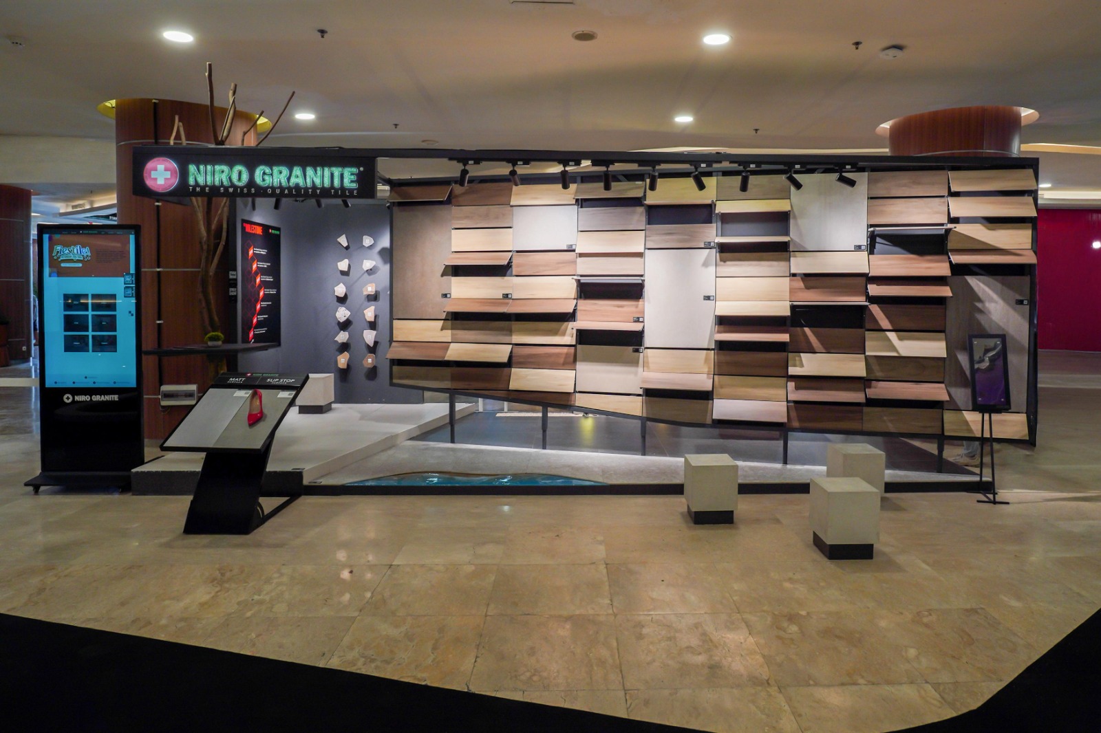 Di booth ini, pengunjung berkesempatan melihat langsung tiga koleksi terbaru Niro Granite: Troy, Serena, dan Suave. Selain itu, berbagai desain tile lainnya juga ditampilkan, memberikan inspirasi yang luas bagi para arsitek dan desainer interior untuk menemukan material yang tepat bagi proyek mereka. Niro Granite siap menjadi bagian dari setiap proyek arsitek melalui rangkaian produk berkualitas tinggi yang memadukan estetika dan fungsi.